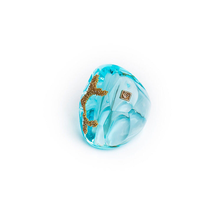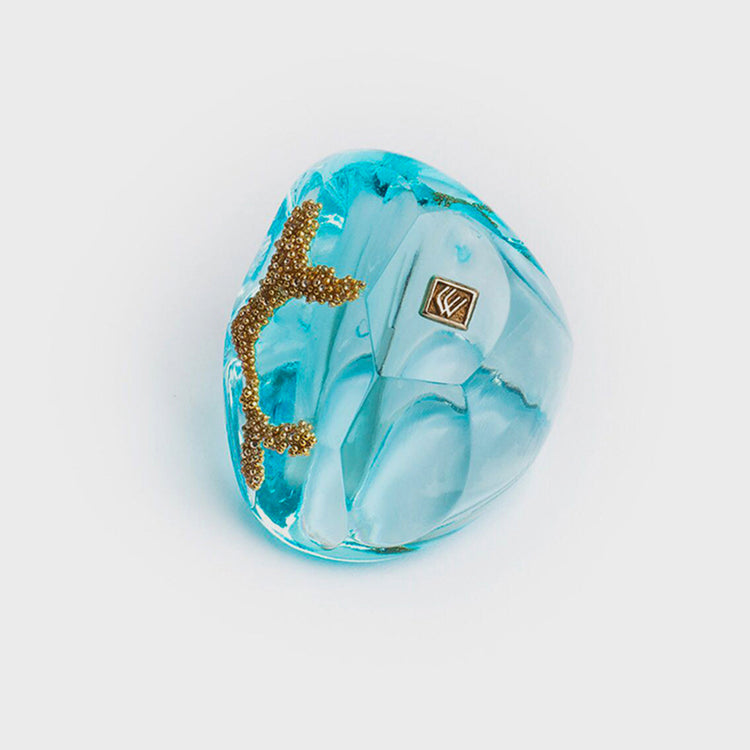 Crystal rings, cast in Italy by Venetian masters. Each piece is meticulously cast and carved by award-winning sculptors on the island of Murano, using millenary tech- niques inherited from the region’s glass families in combination with modern technology. Pieces are embellished with attaches in 18k italian gold and precious stones such as diamonds and amethysts.