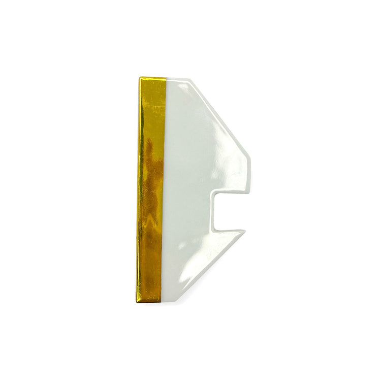 Sculptural Brooches made in Limoges white porcelain with 24k liquid yellow gold. These are highly detailed pieces handcrafted in France by talented local artisans, whose craftsmanship guarantees to maintain the material’s position as the premier pure white decorative porcelain since the 19th century. ‘Conceptual Architectural Jewelry’, as an elevation of non-precious materials by combining them with the precious ones in order to create contemporary pieces that challenge the traditional concept of value, and raises questions of reinvention, recycling and sustainability.
