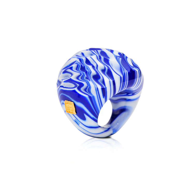 Nayibe Warchausky’s Murano crystal rings, done through a process of melting and cooling mixtures of silicates, results in an optical viewing of the crystal similar to those of the diamond. Gloss, transparency and elasticity on each piece, which are exquisitely hand-made by the finest venetian artisans with 18k Italian gold parts, blending age-old techniques with modern technology. All the production and the product itself is 100% made in Italy.