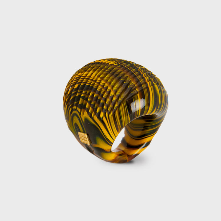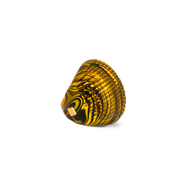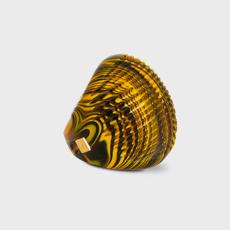 Crystal rings, cast in Italy by Venetian masters. Each piece is meticulously cast and carved by award-winning sculptors on the island of Murano, using millenary tech- niques inherited from the region’s glass families in combination with modern technology. Pieces are embellished with attaches in 18k italian gold and precious stones such as diamonds and amethysts.