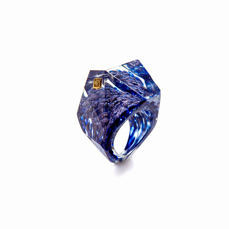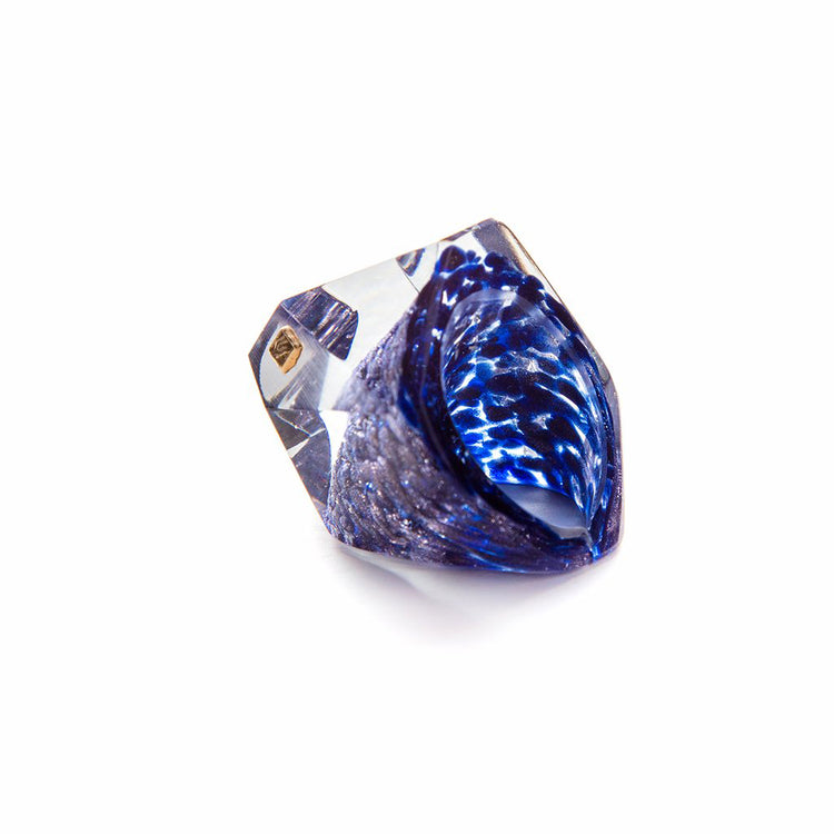 Crystal rings, cast in Italy by Venetian masters. Each piece is meticulously cast and carved by award-winning sculptors on the island of Murano, using millenary tech- niques inherited from the region’s glass families in combination with modern technology. Pieces are embellished with attaches in 18k italian gold and precious stones such as diamonds and amethysts.