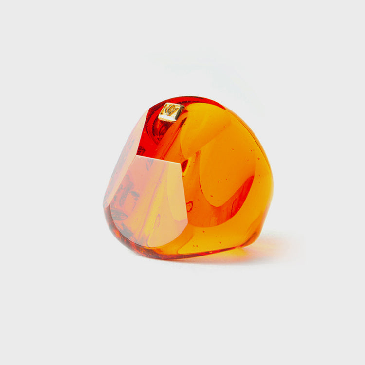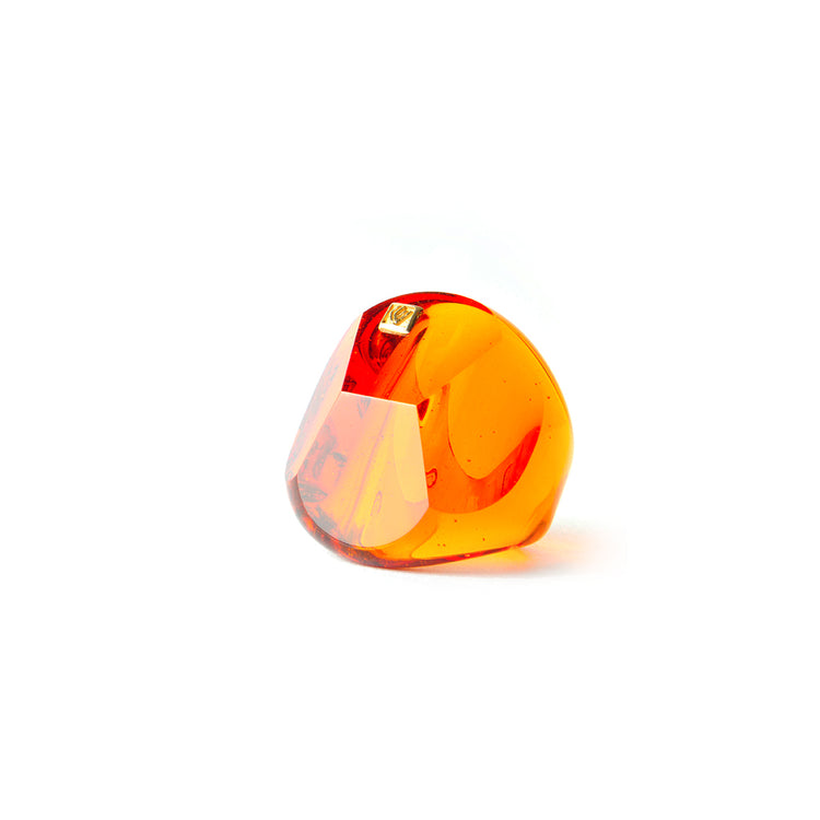 Crystal rings, cast in Italy by Venetian masters. Each piece is meticulously cast and carved by award-winning sculptors on the island of Murano, using millenary tech- niques inherited from the region’s glass families in combination with modern technology. Pieces are embellished with attaches in 18k italian gold and precious stones such as diamonds and amethysts.