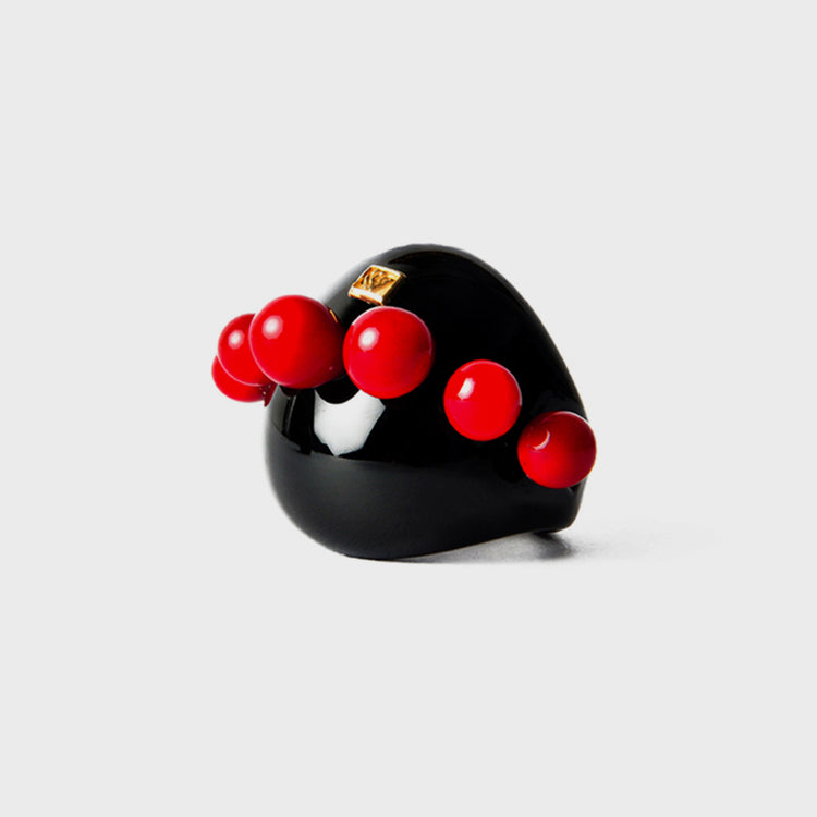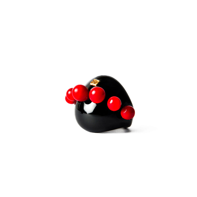 Crystal rings, cast in Italy by Venetian masters. Each piece is meticulously cast and carved by award-winning sculptors on the island of Murano, using millenary tech- niques inherited from the region’s glass families in combination with modern technology. Pieces are embellished with attaches in 18k italian gold and precious stones such as diamonds and amethysts.