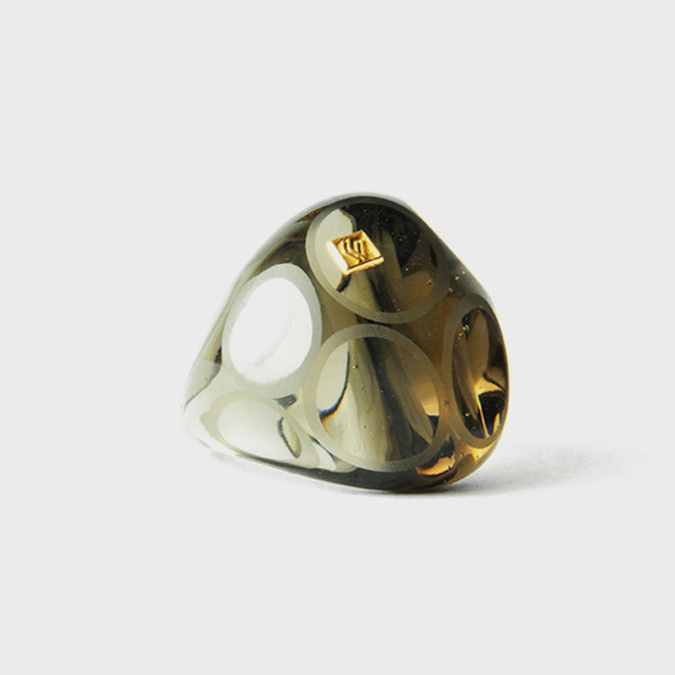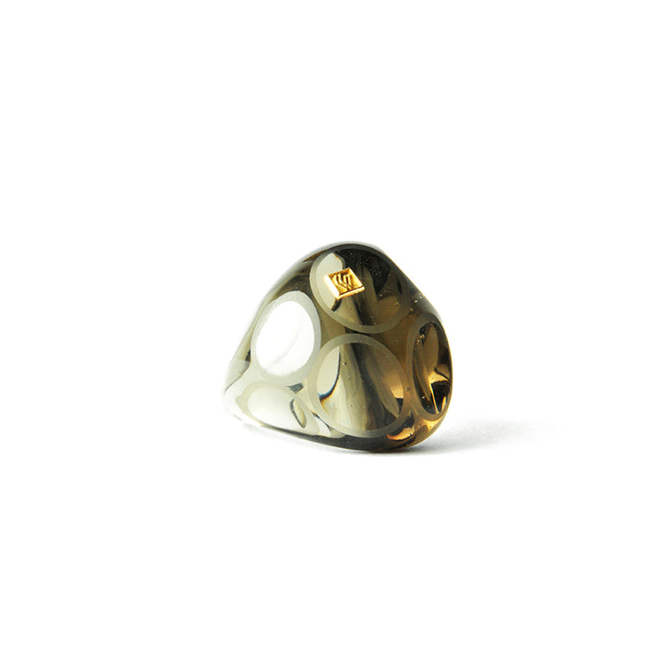 Crystal rings, cast in Italy by Venetian masters. Each piece is meticulously cast and carved by award-winning sculptors on the island of Murano, using millenary tech- niques inherited from the region’s glass families in combination with modern technology. Pieces are embellished with attaches in 18k italian gold and precious stones such as diamonds and amethysts.